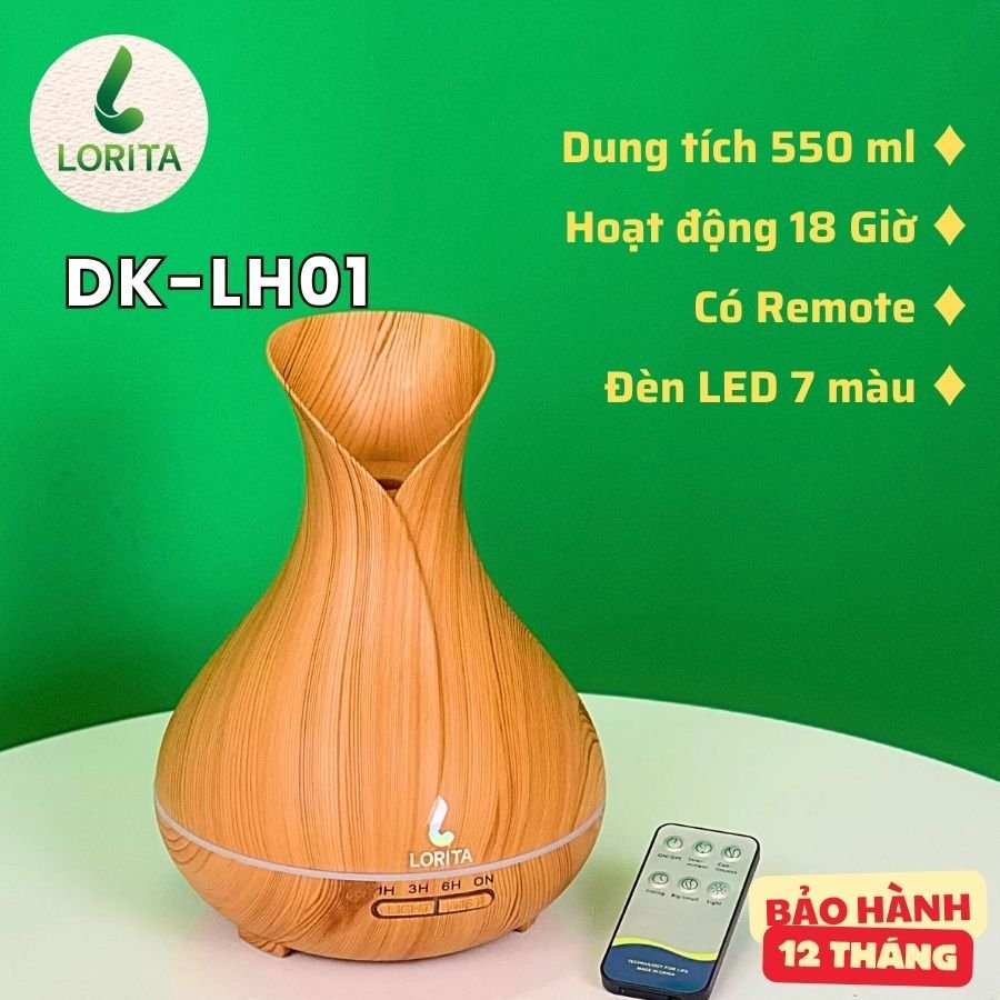Máy xông, máy khuếch tán tinh dầu LORITA DK-LH01 dùng để khuếch tán tinh dầu, xông hương, khử mùi, mang lại cảm giác thư giãn, xua tan mệt mỏi, căng thẳng.
