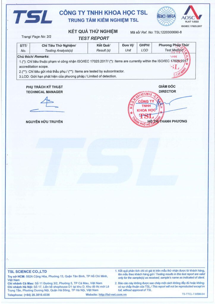 Bạn có thể liên hệ để nhận bản scan hồ sơ kiểm nghiệm chính thức thông qua: